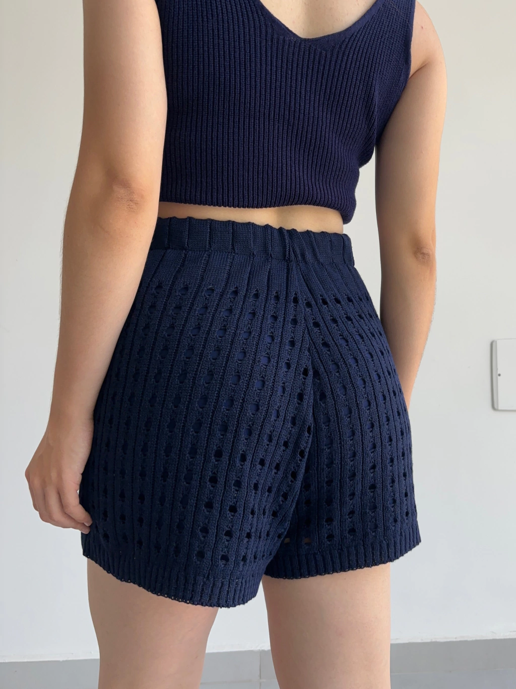 Short Bahamas – shorts rendado com forro, elástico no cós para sustentação e detalhes canelados na barra.
