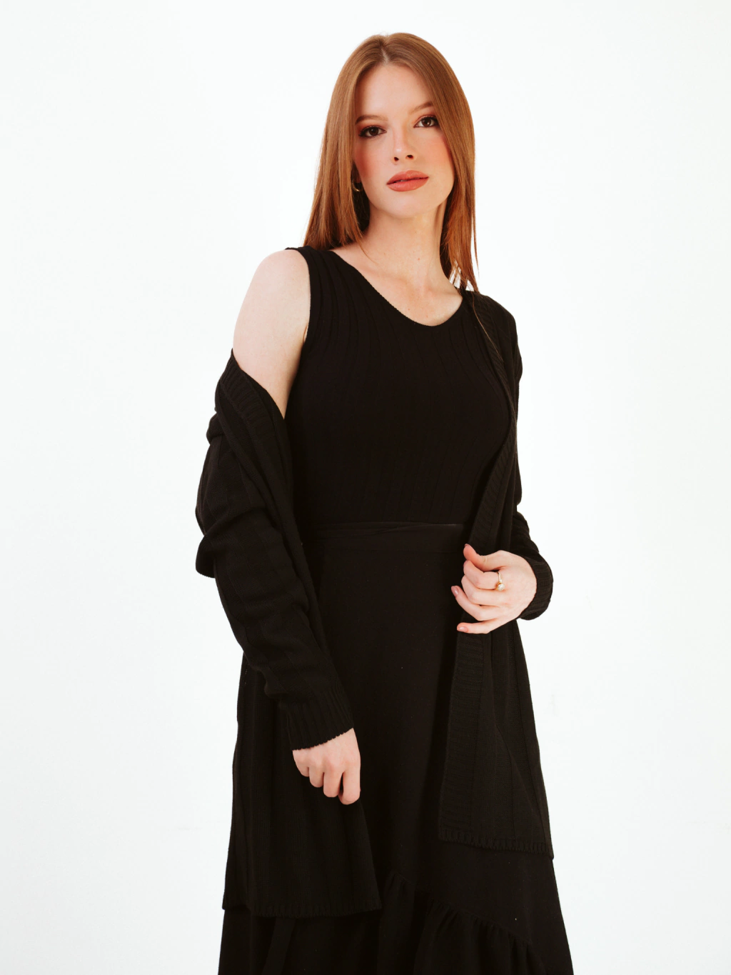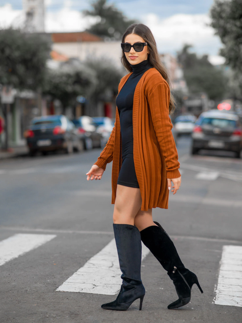 · Facilidade de combinação: o tom preto clássico facilita a integração com jeans, alfaiataria, vestidos e saias — um curinga no seu guarda-roupa.